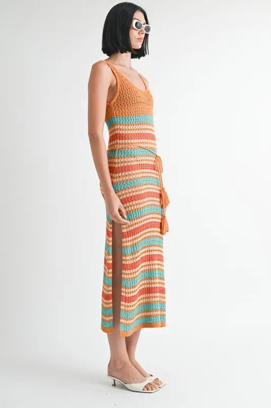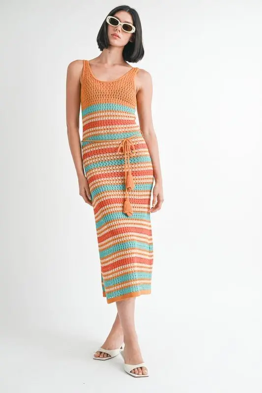 Ever dream of that perfect vacation outfit? This striped crochet dress is the perfect resort wear! Striped, slightly see through, perfect to take from day to evening with beach club vibes!