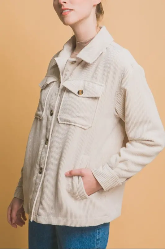 The Corduroy Button Up Jacket with Sherpa Inside is the ultimate blend of style and warmth. Made from soft corduroy, this jacket features a classic button-up design that adds a timeless touch to any outfit. The cozy sherpa lining provides exceptional insulation, perfect for chilly days. With its relaxed fit, this jacket is ideal for layering over sweaters or tees, offering both comfort and versatility. Stay warm and stylish this season with this must-have outerwear piece!