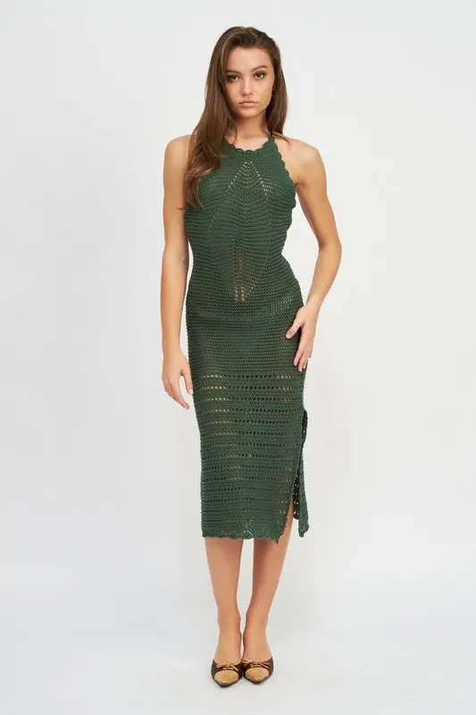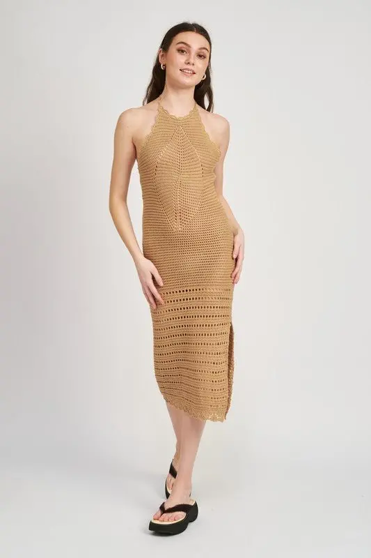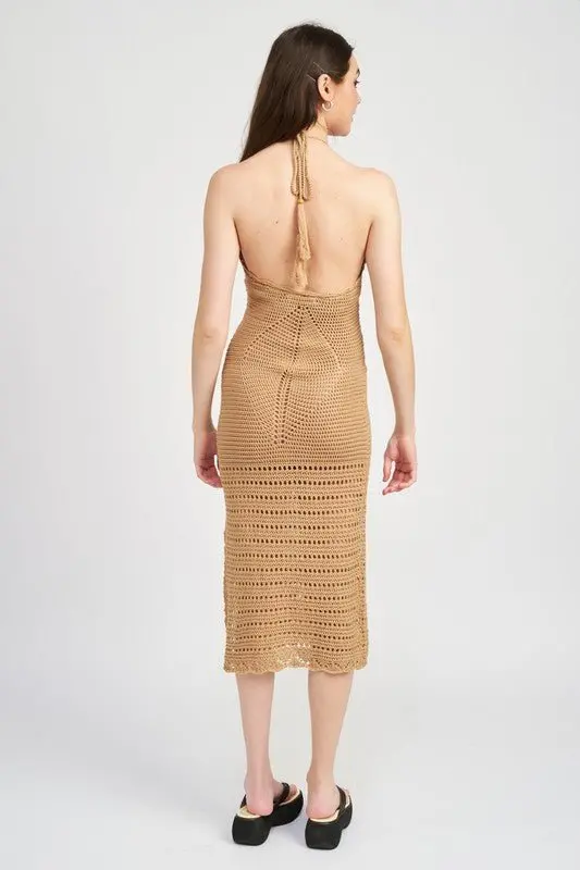 Crochet halter midi dress. The perfect vacation dress to transition from day to night!