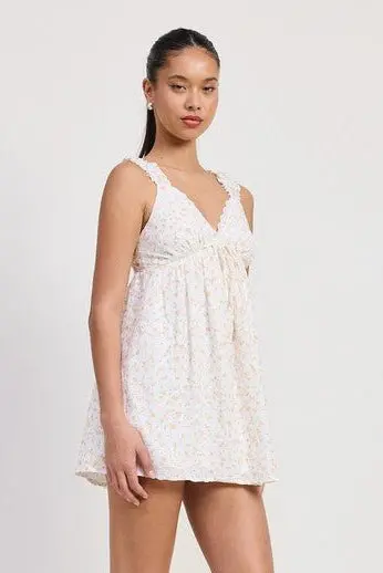 Get ready for your next date night in this adorable Floral Babydoll Dress. With its triangle neckline and thick straps, it offers both comfort and style. Plus, the front tie detail adds a fun touch to this must-have piece. Perfect for any cute date night look, you’ll love the feminine and flirty vibe this dress brings.