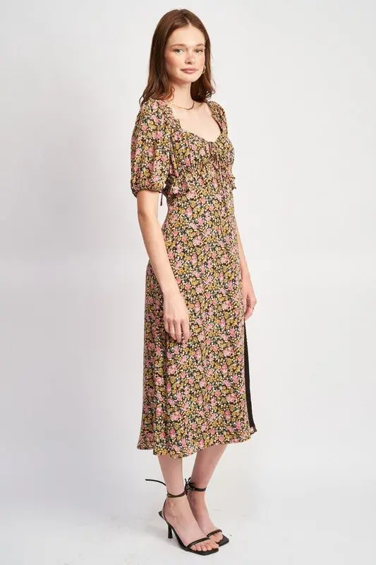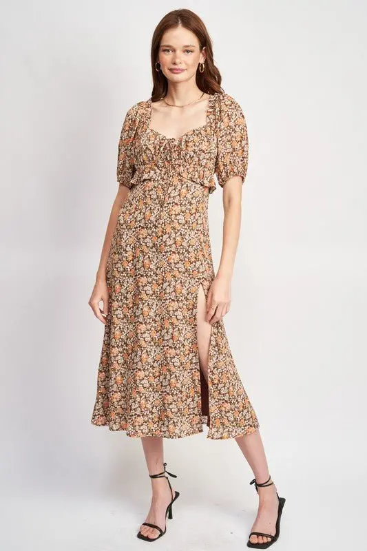 The Floral Ruffle Dress will have you looking sweet and stylish with its floral sweetheart neckline and midi length. Its short sleeves provide the perfect balance of coverage and comfort. Add a touch of whimsy to your wardrobe with this charming dress.