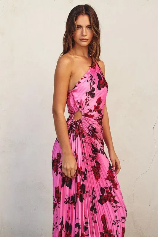 Leila Maxi Dress features a bold floral print with a chic one-shoulder design and asymmetrical hem. The side cutout adds modern edge, while the hidden zipper keeps everything smooth and secure. Perfect for weddings, holidays, and special events—elegant, comfortable, and ready to turn heads.