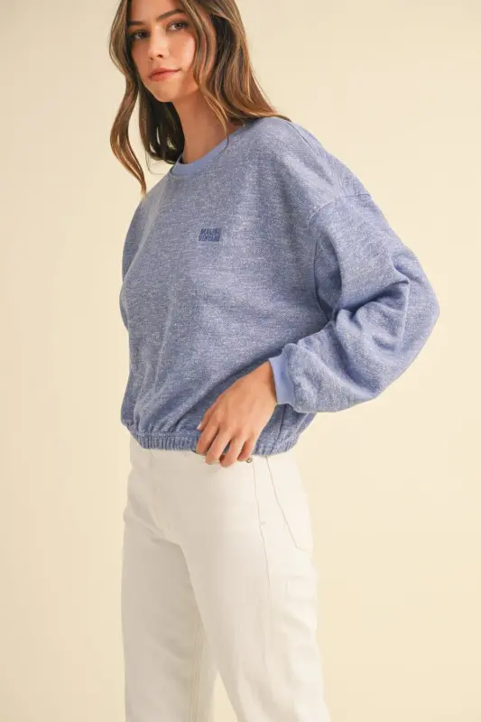 This stylish crop sweatshirt features a round neck, long sleeves, and “MALIBU VINTAGE” embroidery on the front. The pullover style makes it easy to wear and style for a casual yet fashionable look. Perfect for layering or wearing on its own, it’s a versatile piece to add to your wardrobe for a touch of street style and comfort.