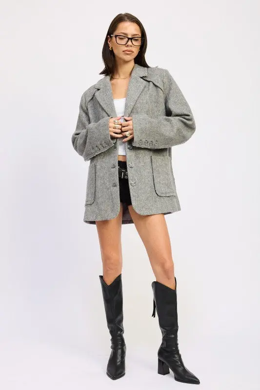 Stay cozy and stylish in this Oversized Coat With Pockets, featuring trendy distress detailing for a relaxed, edgy vibe. Its roomy fit offers comfort and easy layering, but if you prefer a more tailored silhouette, simply size down. Perfect for adding effortless cool to any casual outfit.