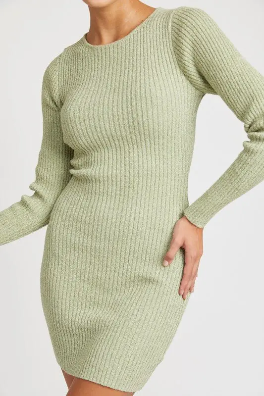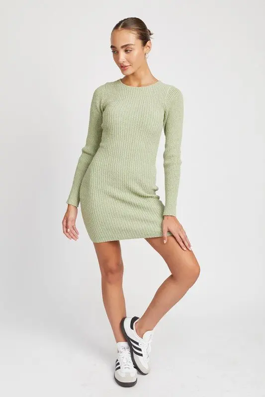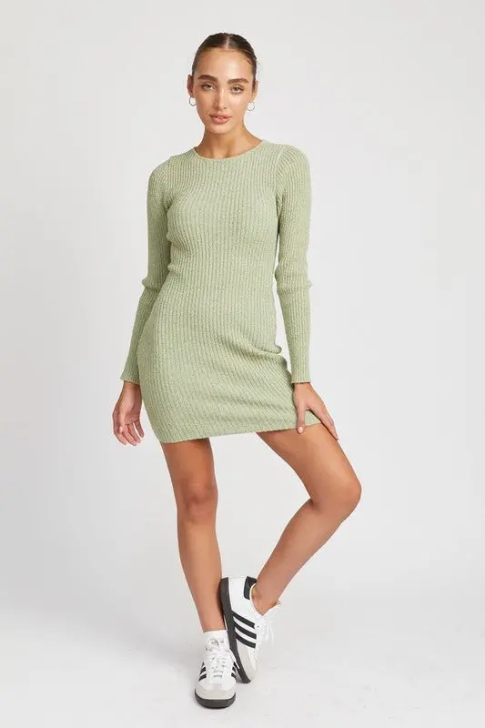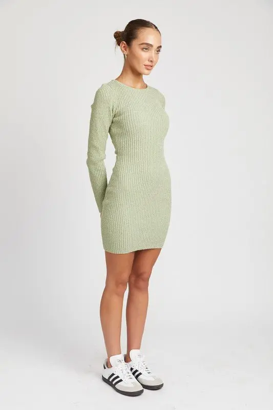 Soft ribbed mini dress with long sleeves and round neckline. Fabric has great stretch. We love this dress for the layering season!