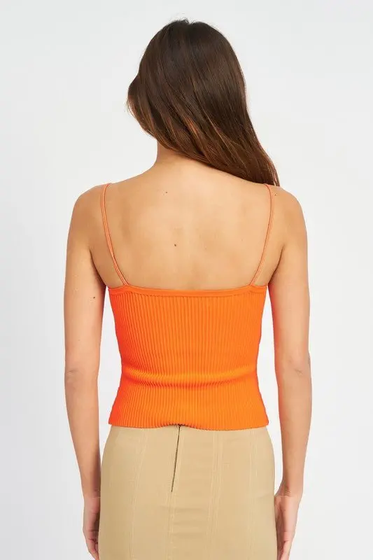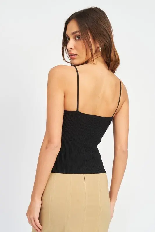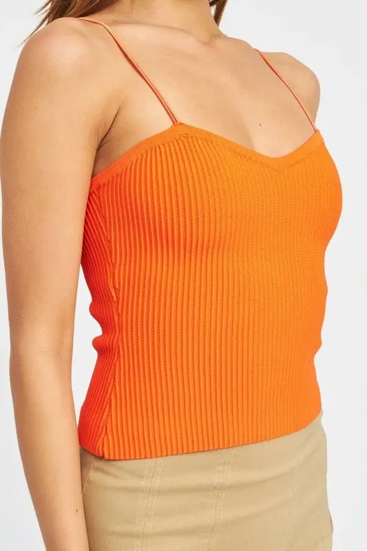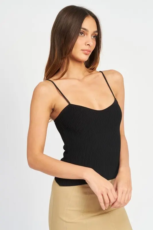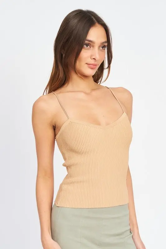 Double spaghetti strap cami top, made with a smooth, medium weight, ribbed fabric with great stretch. Ultra comfortable and flattering.